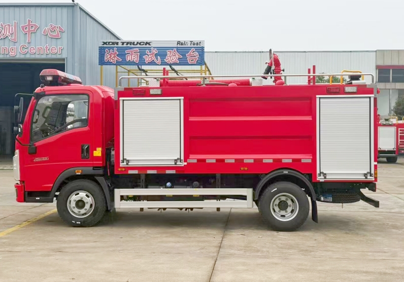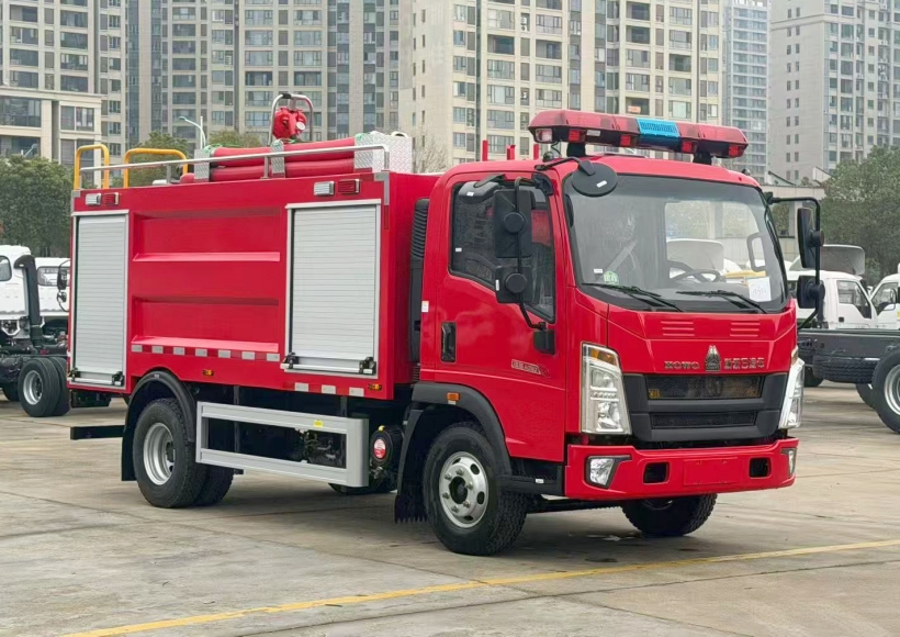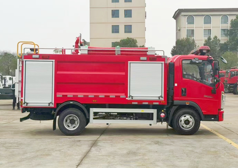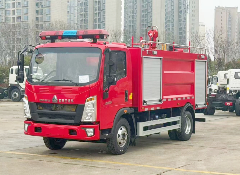豪沃轻卡4吨水罐消防车这款消防车的底盘采用豪沃轻卡成熟可靠的ZZ1097H3815F191Z型号,3280mm的轴距设计,兼顾了灵活性与稳定性,无论是乡镇狭窄的乡间小路,还是厂区内部复杂的道路环境,都能轻松穿梭。