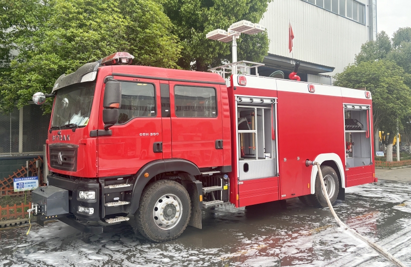 灭火剂容量:根据火灾规模与作业半径选择,社区消防站的水罐容量建议3-5吨,工业园区则需8-12吨;泡沫消防车的泡沫液罐容量应不低于水罐容量的10%,满足油类火灾的持续扑救需求。