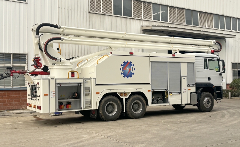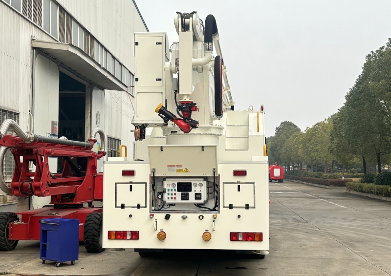 案例:某30层写字楼火灾中,该车通过25米臂架直达起火楼层,配合遥控水炮快速压制火势,避免人员伤亡。