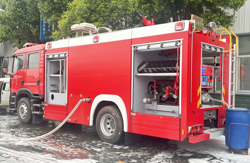 灭火剂容量:根据火灾规模与作业半径选择,社区消防站的水罐容量建议3-5吨,工业园区则需8-12吨;泡沫消防车的泡沫液罐容量应不低于水罐容量的10%,满足油类火灾的持续扑救需求。